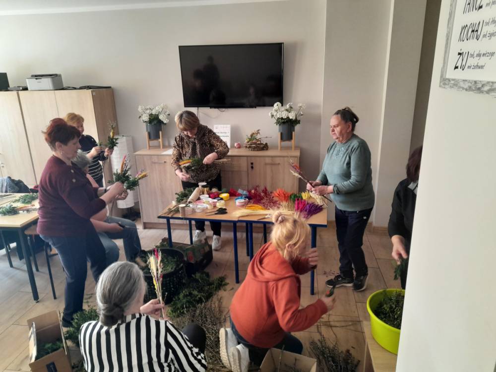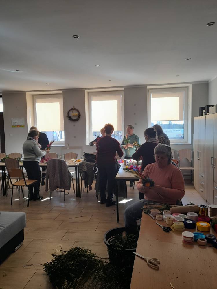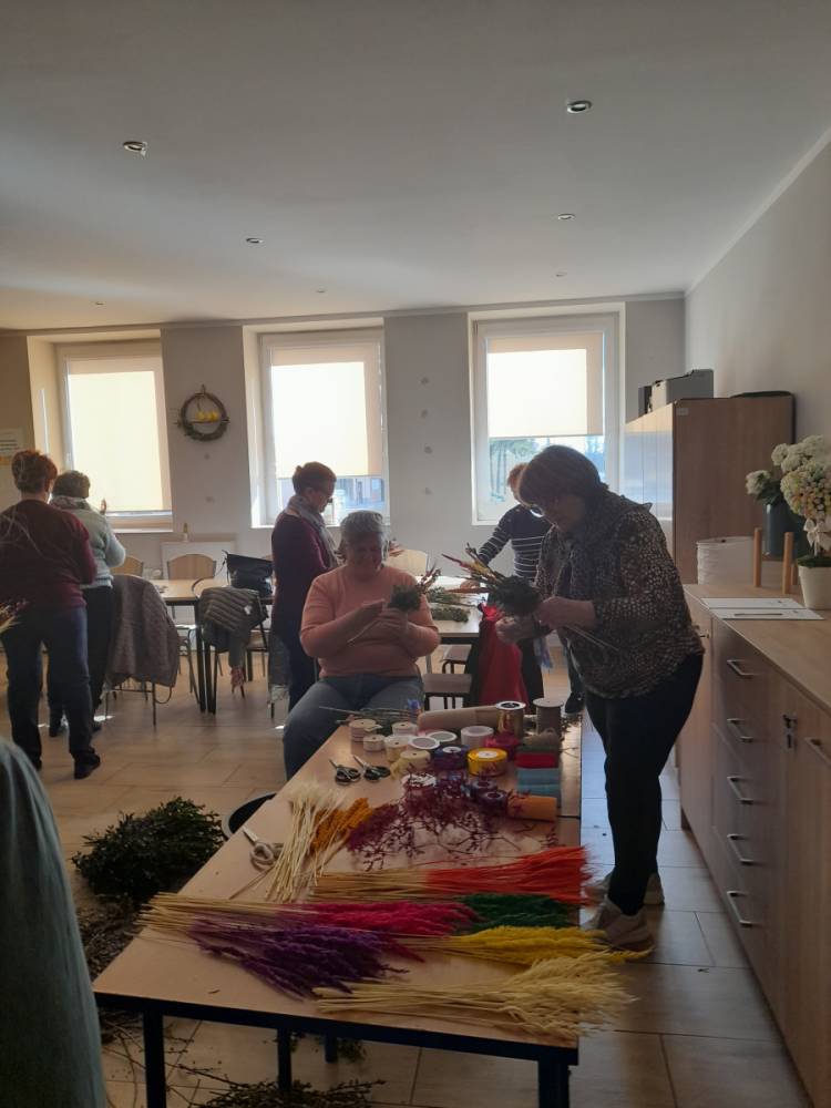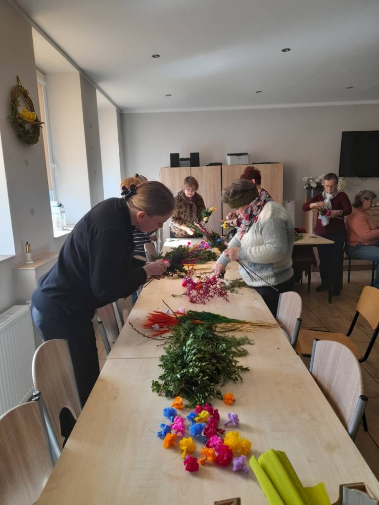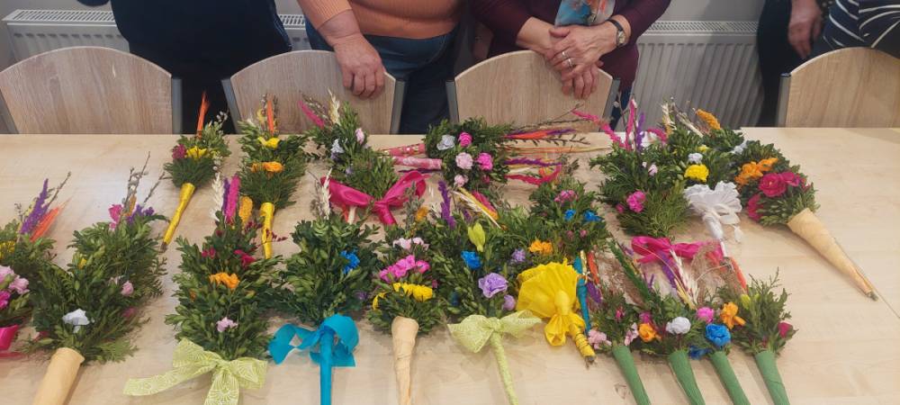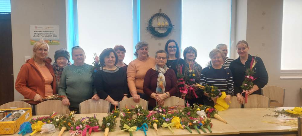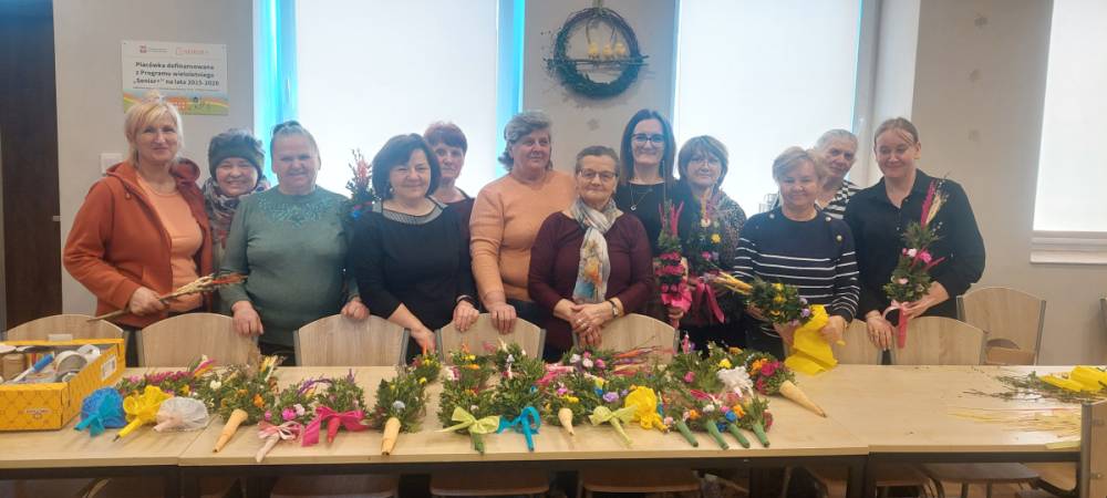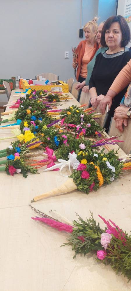 8 kwietnia 2025 roku seniorki z Klubu Senior+ w Głuchowie spotkały się, aby samodzielnie tworzyć piękne rękodzieło - palmy wielkanocne. Z gałązek, bazi kotków, bukszpanu - przyozdobionych kwiatkami ręcznie wykonanymi z bibuły, wstążkami i kolorowymi sztucznymi ozdobami - powstały przepiękne wielkanocne palmy. Podczas Niedzieli Palmowej dumnie prezentowały się w czasie mszy świętych w lokalnych kościołach - przypominając o tradycjach i zwyczajach świeckich, lokalnych, katolickich, symbolizując gałązki palmowe rozrzucane przez tłum przed Chrystusem wjeżdżającym do Jerozolimy. Naszym seniorkom gratulujemy kreatywności, umiejetności, pomysłowości oraz zdolności manualnych.