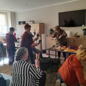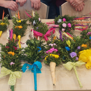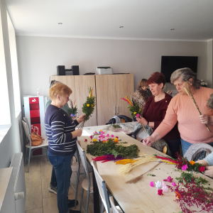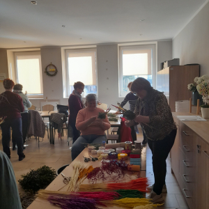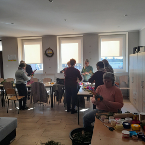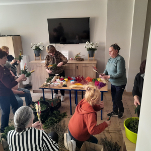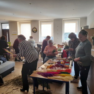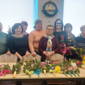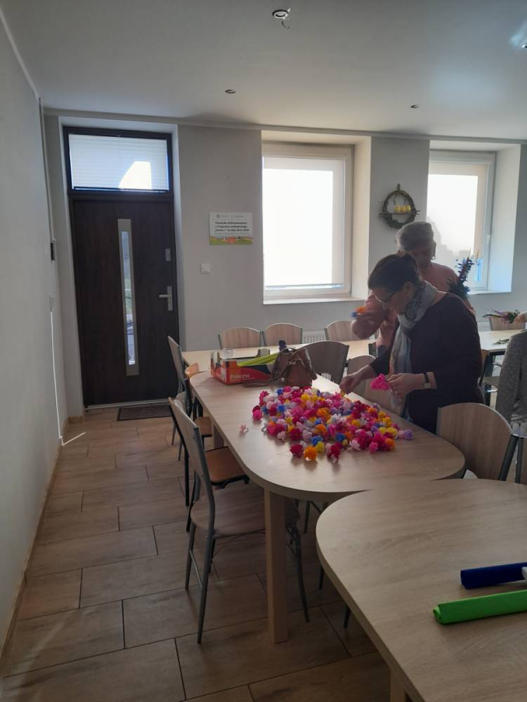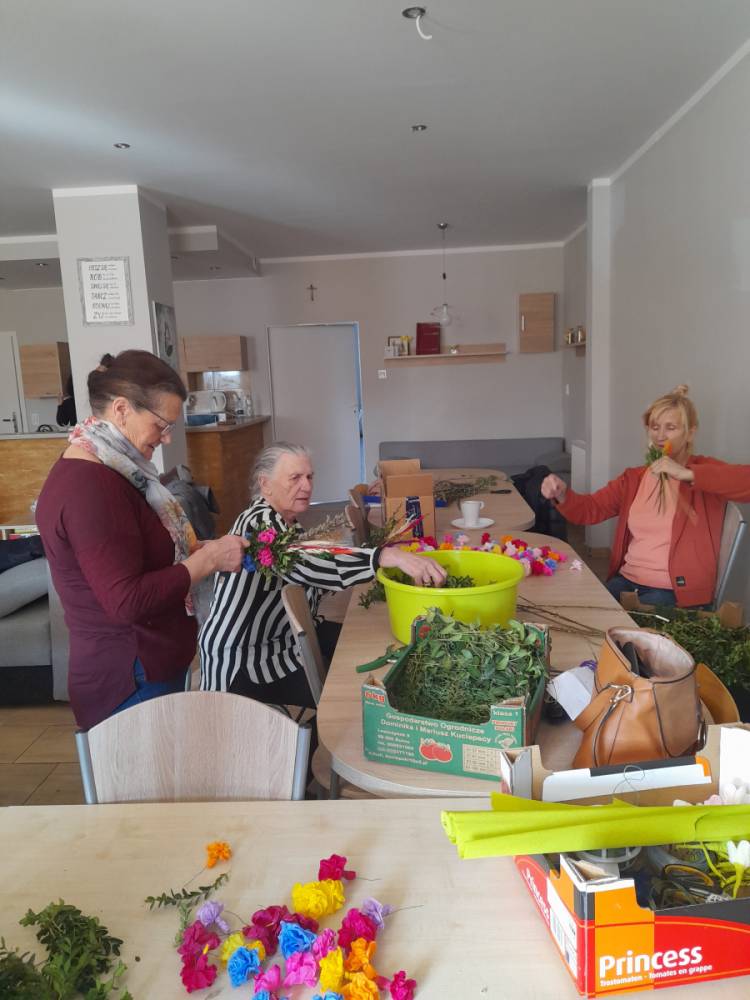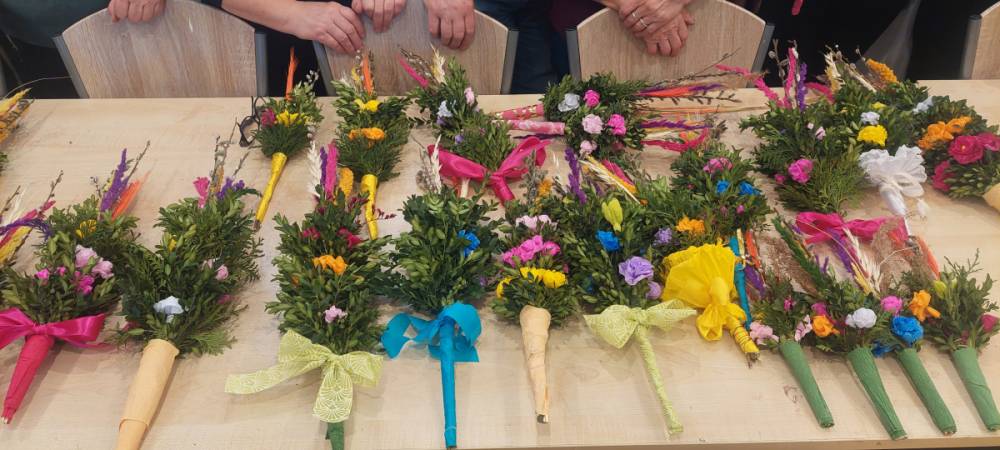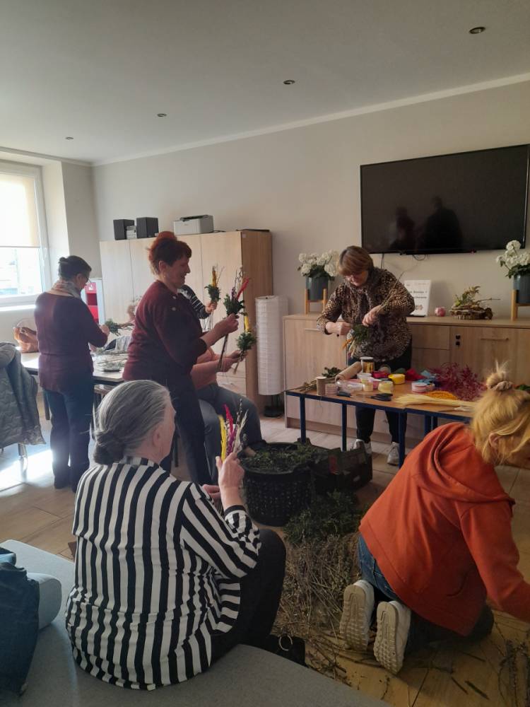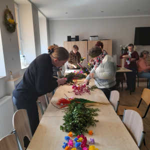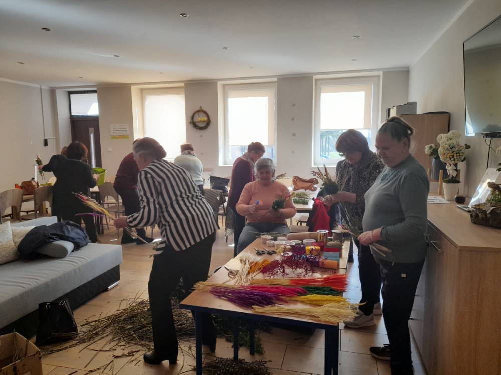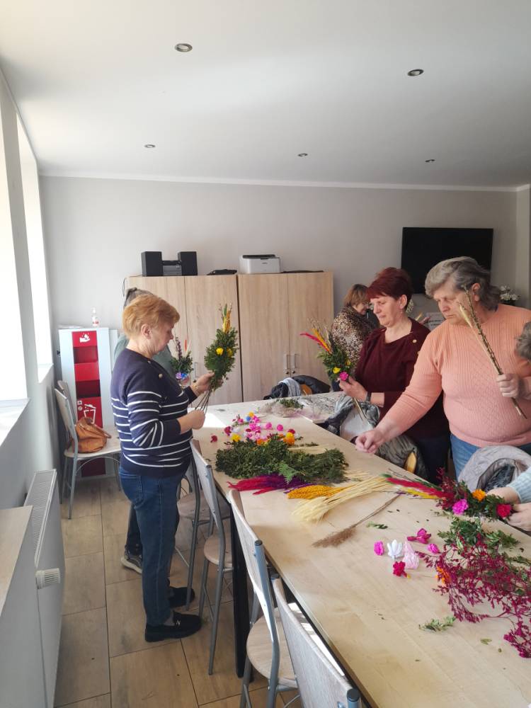 8 kwietnia 2025 roku seniorki z Klubu Senior+ w Głuchowie spotkały się, aby samodzielnie tworzyć piękne rękodzieło - palmy wielkanocne. Z gałązek, bazi kotków, bukszpanu - przyozdobionych kwiatkami ręcznie wykonanymi z bibuły, wstążkami i kolorowymi sztucznymi ozdobami - powstały przepiękne wielkanocne palmy. Podczas Niedzieli Palmowej dumnie prezentowały się w czasie mszy świętych w lokalnych kościołach - przypominając o tradycjach i zwyczajach świeckich, lokalnych, katolickich, symbolizując gałązki palmowe rozrzucane przez tłum przed Chrystusem wjeżdżającym do Jerozolimy. Naszym seniorkom gratulujemy kreatywności, umiejetności, pomysłowości oraz zdolności manualnych.