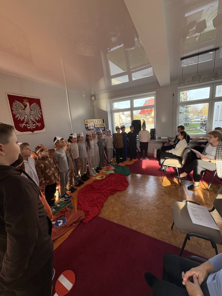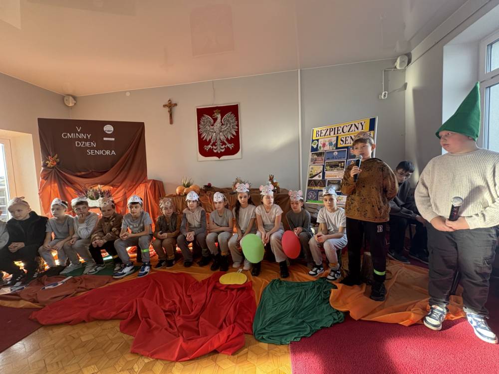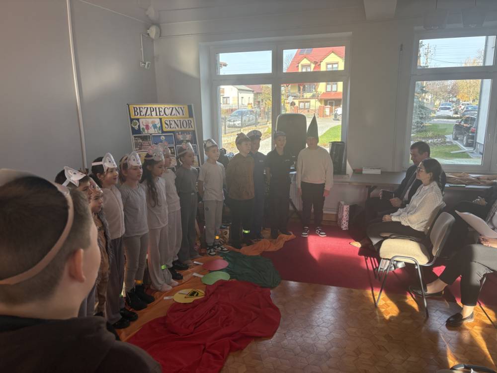Uroczystość uświetnili uczniowie klas I i III ze Szkoły Podstawowej w Michowicach przedstawieniem o bezpieczeństwie seniorów na drogach realizowanym w ramach konkursu "Odblaskowa Szkoła 2025".