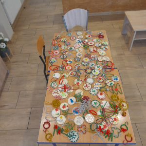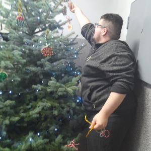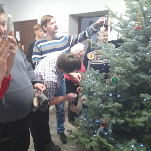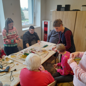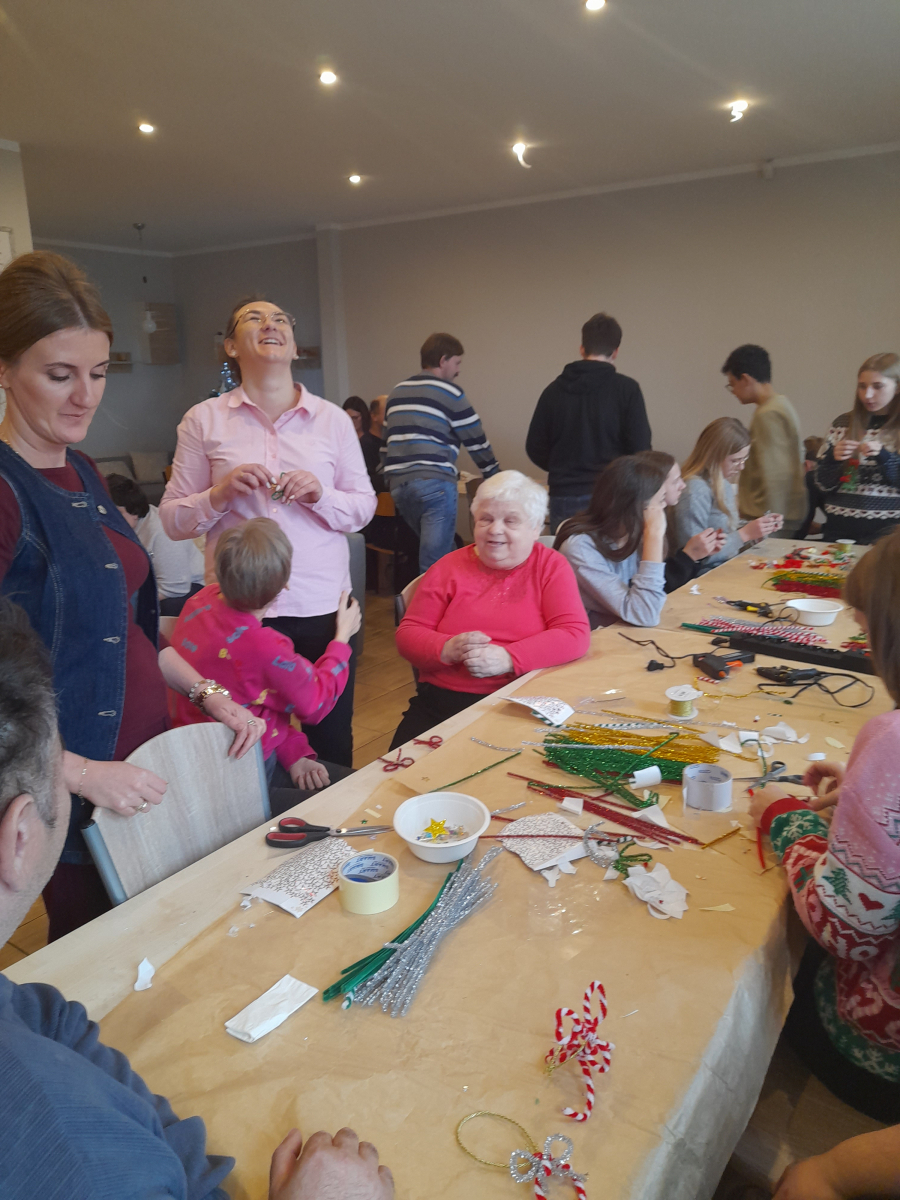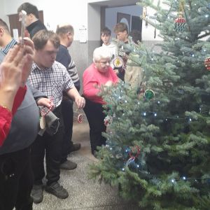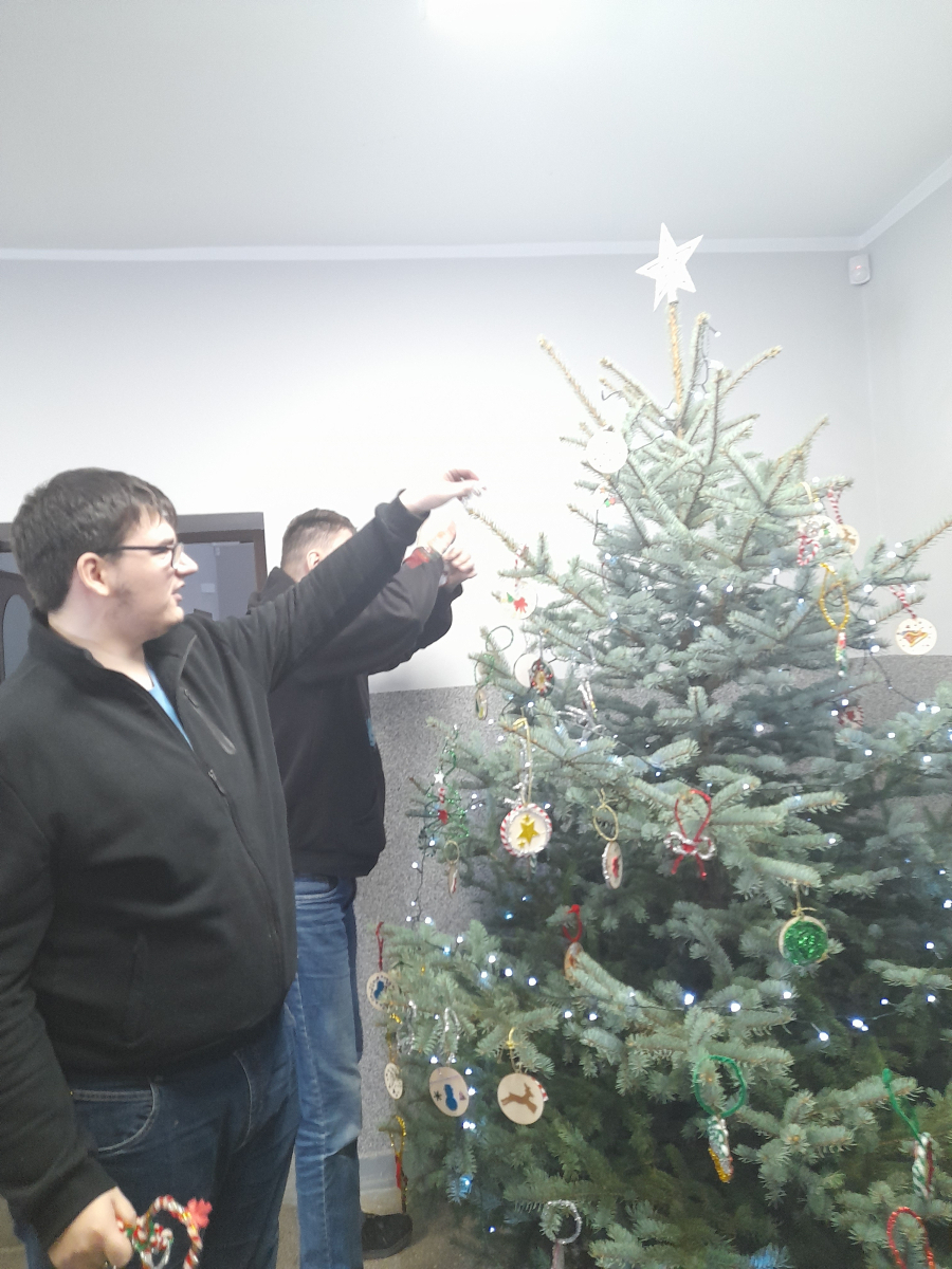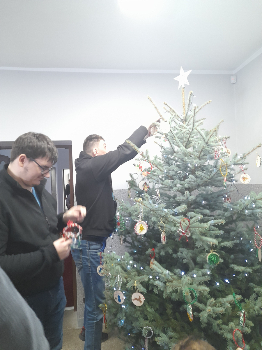 Podczas tegorocznych warsztatów nasza szkolna młodzież wspólnie z osobami niepełnosprawnymi wykonała przepiękne ozdoby choinkowe. Tradycyjnie - wspólnie ubrali najpiękniejszą choinkę w holu Urzędu Gminy w Głuchowie, która już kolejny rok swoją oryginalnością i wyjątkowym cha-rakterem wita urzędników, petentów i wszystkich odwiedzających. Wszyscy uczestnicy warsztatów otrzymali dyplomy z podziękowaniem oraz świąteczne niespodzianki od Mikołaja.